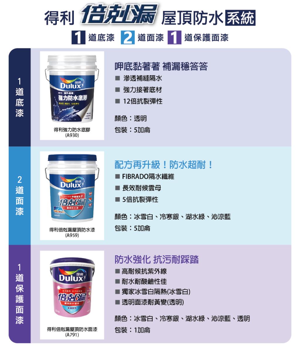 #得利 #Dulux #防水 #水性 #791 #791 #防水底膠 #倍剋漏 #屋頂防水面漆